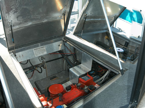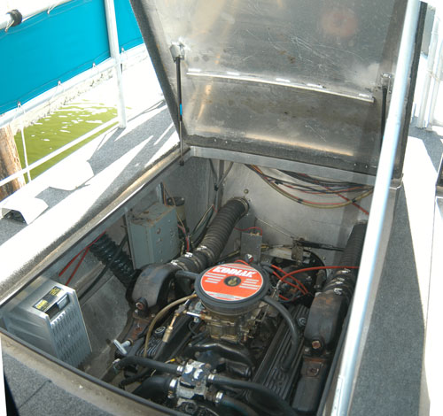The photos below are of the engine room compartments, which you can see are very accessible and roomy. The engine room is spotless and meticulously maintained, and house the two 350 Chevy's ('93) and the generator. These engine compartments are located under the back deck, with lots of air and room to move around.