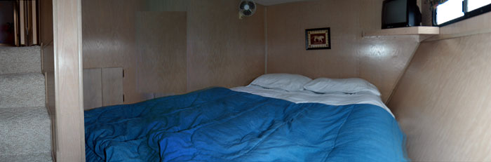 This second stateroom is cozy and the perfect kids room or guest cabin.